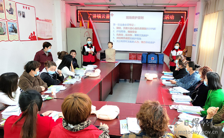4月18日上午,市红十字会的工作人员和童之梦妇儿活动中心的志愿者走进广济镇云盖村,开展安全宣传“进家庭”活动,将安全知识送到每家每户。
