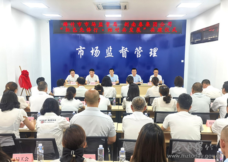6月30日上午,市市场监督管理局、剑南春集团公司“红色先锋行·结对共发展”共建仪式举行。市委常委、组织部部长李长英,市委常委、副市长李强参加共建仪式并为共建活动揭牌。 仪式上,共建单位双方负责人作了发言;共建双方党组织牵头人进行共建协议签约。 李长英、李强强调,双方要充分认识共建的重要性,要在“共”字上下功夫,以共创先进基层党组织、共抓党员教育、共心共谋科学发展为主要内容形成共建局面;要在项目上抓推进,以项目为手段,凝聚起强大组织力行动力战斗力,推进结对共建落地落实;要在机制上求突破,共建双方要建立工作联席会议机制,积极创新党组织活动内容和方式,认真总结活动经验,扩大活动成果,建立互帮互助、共建共赢的长效工作机制,推动营造优良的营商环境;要在发展上见实效。共建双方要充分利用好这个平台,进一步增强凝聚力和战斗力,为我市党建工作走在前列做出积极贡献。 据悉,接下来双方将以强化党建作用为抓手,切实发挥机关党组织优势提升民营企业党组织的组织力,通过开展结对共建活动,构建资源共享、优势互补、共同提高的开放式基层党建工作新格局,助推我市机关党建和两新党建工作再上新台阶。 仪式结束后,与会人员还就共建办公室以及剑南市场监管所规范化建设进行了参观。