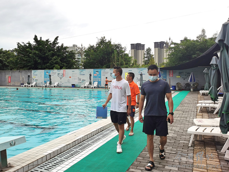 检查组还现场进行了疫情防控和安全知识宣传,引导各经营性游泳场所业主及时完善常态化疫情防控措施,抓好基础管理、日常防控、应急处置等“三大环节”,增强从业人员安全防护意识,及时开展隐患排查整治,将安全隐患消除在萌芽状态,确保市民群众生命安全。 “从7月初开始,我们陆续对全市19家经营性游泳场所进行了拉网式排查,检查重点为健身防护设施、人员配备、应急措施等。”市文旅局副局长曾敏表示,该局将不定期开展安全隐患检查“回头看”,按照分级分类、深入细致、重点突出的原则,强化暑期游泳场所的管理。同时,他们也提醒广大游泳爱好者,为了自身安全,一定要到取得了高危险性体育项目经营许可证的游泳场所进行游泳健身。