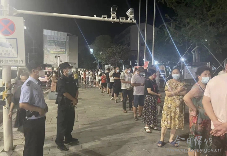 7月30日早上5点40分,剑南派出所民(辅)警提前到达核酸检测点,一边组织居民有序排队等候,一边借机对大家进行反诈宣传,“警察蓝”的身影成为了现场一道靓丽的风景线。在核酸采样期间,一对老年夫妻颤颤巍巍走来,民警杨东看到后立即上前搀扶,排队等待的居民们也自觉让出了一条“绿色通道”。“看到大家这么支持配合我们的工作,再辛苦也值得。”他告诉记者,有了前两轮组织居民核酸检测的经验,他们再次优化流程,提升服务,减少了居民等待时间,确保整个核酸检测点安全有序。 下午3点,骄阳似火。在市第二人民医院核酸检测点上,汉旺分局辅警杜明宇手持小喇叭,温馨提醒现场群众加强自身防护,并对人流较多的队列进行引导,实行分段放行,整个检测现场秩序井然。由于天气炎热,汗珠顺着他的脸颊落下,后背的衣服早已被汗水浸湿,声音也开始变得沙哑,但杜明宇却顾不上休息。“有人中暑晕倒了......”听到不远处传来求助声,他赶紧上前,一边疏散围观群众,一边将其搀扶送医,温馨的一幕被市民拍下发布到网上,得到了很多网友的点赞。