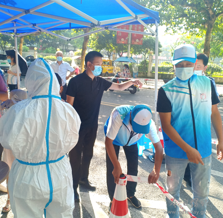 “大家遵守秩序,请排好队伍!”7月27日深夜,龙玉忠在紫岩路核酸检测点参与志愿服务。他告诉记者,听说要组织市民连夜做核酸检测的时候,当天晚上单位就有4名党员参与了志愿服务,并按照统一安排,立刻赶往紫岩路社区开展志愿服务工作。