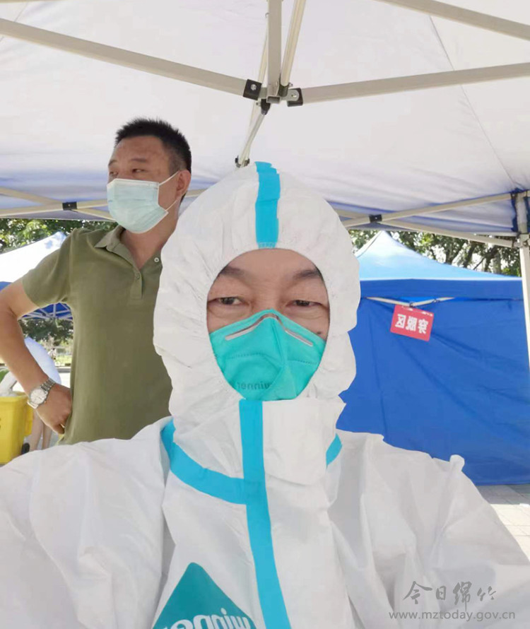据了解,自我市本轮疫情发生后,市酒类发展局反应迅速,第一时间派出干部职工参与疫情防控,该局退役军人叶生泉、王锋更是主动请缨,申请到抗疫一线协助全员核酸检测工作。在连续4天的区域性全员核酸检测中, 拥有10年军龄的叶生泉放弃休息连夜赶到万安广场核酸检测点奋战通宵;王锋完成手上工作之后,迅速赶到大风车核酸检测点参与人员信息登记。两位同志均已芳华不在,却身着厚重的防疫服,奔走在疫情防控工作一线,用行动阐释了“退伍不褪色,退役不褪志”的精神,充分展现了新时代退役军人的本色和风采。 (图由市酒发局提供)
