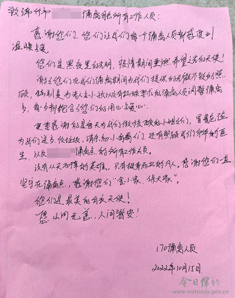 【暖心】纸短情长!解除隔离人员的这封感谢信好暖