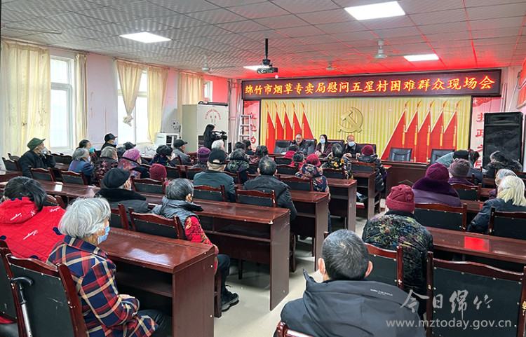 1月13日上午,绵竹市烟草专卖局对对口帮扶的剑南街道五星村的60名困难群众进行了慰问,送去了慰问金和节日祝福。