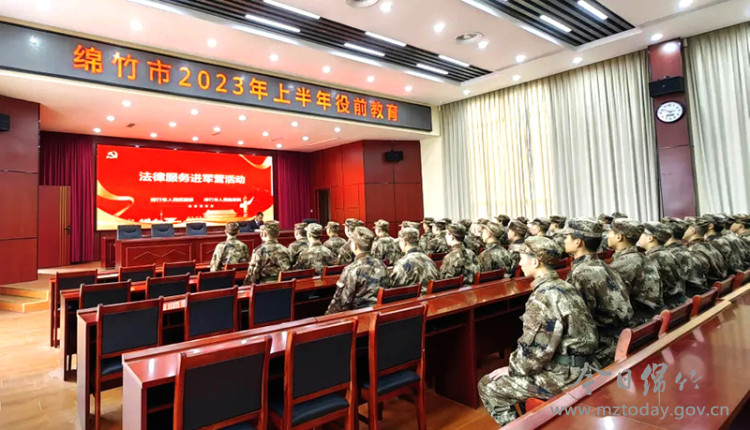 日前,绵竹市人民检察院干警来到市人武部,为120名预定新兵进行了役前法治教育。