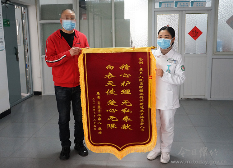整理完患者的床铺,邹建芝接到患者家属吉先生的电话,一再表示要当面向她表示感谢。“邹护士,我文化少,想说的都在锦旗和信里了。”上午10点,吉先生将印有“精心护理无私奉献 白衣天使爱心无限”字样的锦旗和一封感谢信送到了邹建芝的手中。 原来,吉先生的母亲肖婆婆是一名老患者,住院已经20余年。这些年,邹建芝每天上班都会提前到岗,了解肖婆婆有没有哪里不舒服,有没有好好吃饭等,并且坚持每天带她去户外活动,不厌其烦地做心理护理和康复锻炼,还时常通过视频让他们“见面”。正因为邹建芝严谨的工作态度和优质的护理服务,让吉先生能够放心地将母亲为之托付20余年。