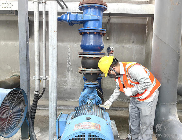 保证各项设施设备安全运转 “我们每天接班前的第一件事就是巡检,主要是对水泵、管道、阀门等重要生产设备进行检查,判断生产现场设施设备是否正常运行,巡检一般会持续半个小时左右。” 早上8点,生产运行部B值的巡检员刘放与同事们开启了新一天的工作。 记者跟随刘放来到综合水泵房,房内机器高速运转,声音轰鸣,刘放拿着工具,逐一检查水泵是否有裂缝、异响。随后,记者跟他来到高达30米的生物质锅炉旁,爬上去会比较吃力,还要克服心理上的恐惧,但这对刘放来说已是家常便饭。只见他迅速爬上锅炉楼梯,仔细对仪表阀门进行全面严格地检查,确保所有部件安全可靠。而这样的巡检,生产运行部B值的工作人员每天要进行三次。