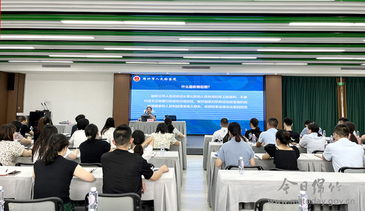 为进一步优化法治营商环境,强化职务犯罪预防工作,8月22日下午,绵竹高新区举行了“知纪明法”大讲堂,邀请市人民检察院检察官为全体干部职工进行了专题法治宣讲。