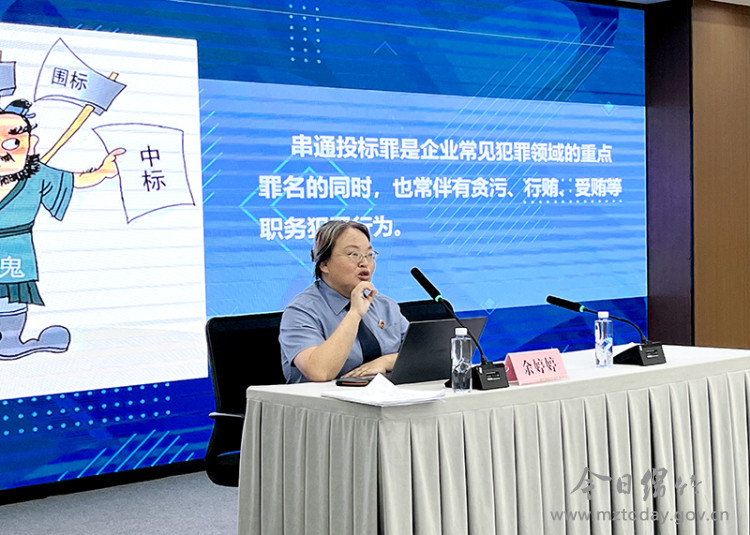 市人民检察院第一检察部主任、一级检察官余婷婷结合绵竹高新区的性质和工作特点,以发生在身边的典型案例入手,综合运用党政纪律和法律知识,分析了串通招标投标的概述和各类职务犯罪的特点、原因及危害等。同时,她还结合办案实际,对加强法治教育、廉政教育和强化权力监督等方面,给与会干部职工提出了有针对性的预防建议。