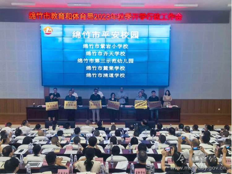 会议还对紫岩小学、市第三示范幼儿园、清道学校等17所荣获绵竹市平安校园的学校进行了表彰授牌。 (图片由市教体局提供)