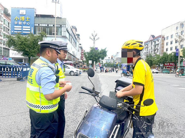 “不要在车流中快速穿行,交通安全最重要。”在检查中,交警还对外卖员、快递小哥等重点人员进行教育宣传,叮嘱他们要坚决克服侥幸心理,正确佩戴安全头盔,做到安全文明骑行。