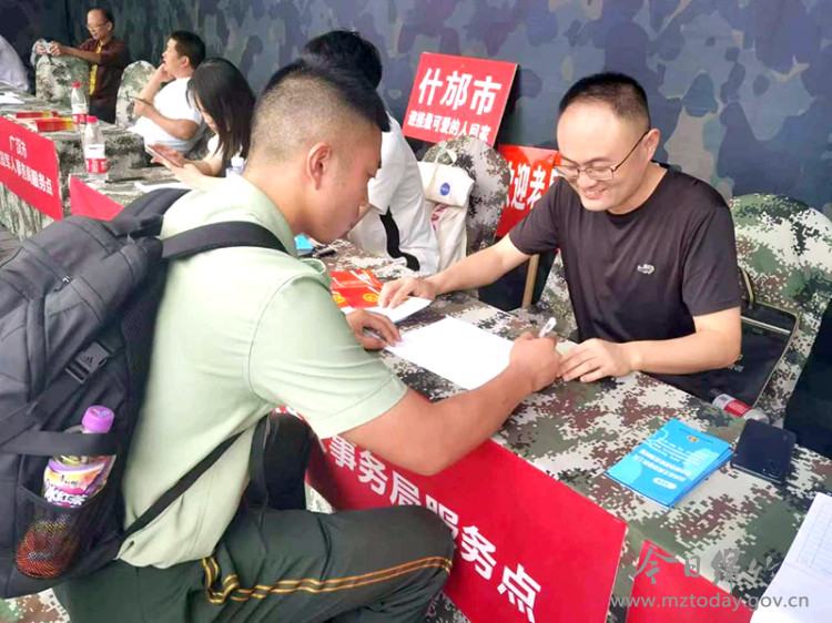 当退役士兵们走出站台,接站的工作人员和退役士兵家属们热情地上前迎接,为他们穿戴绶带和大红花。工作人员手持“退役军人一件事”服务清单向大家详细介绍返乡报到流程及各类优惠政策。合影留念后,退役士兵免费乘坐专车前往绵竹市退役军人服务中心,在专门设置的“军人退役一件事”窗口,实现报到接收、落户、预备役登记、优待证办理、社保转接、党组织关系转接、技能培训等13项事项集中联合办理。