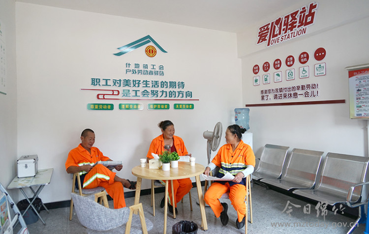 9月4日上午11点,在什地镇户外劳动者“爱心驿站”,电风扇送来阵阵凉风。环卫工人李付琼和同事正利用休息时间,在这里喝水歇脚。“最近天气炎热,我们长时间在户外呆着很难受,现在有了驿站,再也不用担心没地方休息了。”李大姐话音刚落,又陆续走进几名户外劳动者,大家有说有笑,乐意融融。 “该站点于今年8月中旬建成投用。我们还充分利用自身条件,开展各类宣传活动,向户外劳动者提供舒心服务和硬件支撑,赢得了大家的点赞。”什地镇工作人员李娟介绍,在建设驿站前期,他们积极走访了解户外劳动者需求,通过建立规章制度、购置设施设备、配置专人进行管理,让广大户外劳动者在工作时间能享受到暖心服务。镇上还将依托站点,深化阵地建设,开展形式多样的活动,让户外劳动者感受到了工会组织的温暖。