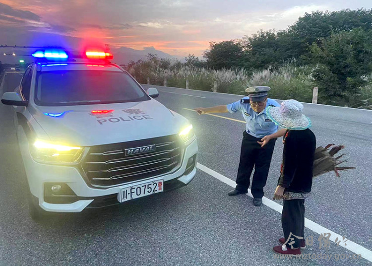 当天晚上7点20分,交警侯思枢与张帅巡逻至货运大道绵远段时,发现一名80岁左右的大娘,怀里抱着一捆木材,在道路中央行走。她的身旁不时有货车经过,情况十分危险。两人迅速上前将大娘拦下,将其带至安全地方。