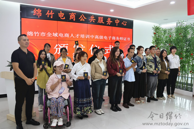 9月22日下午, 我市全域电商人才培训中高级电子商务师证书颁发暨竹臻美新品发布活动在绵竹电商公共服务中心举行。