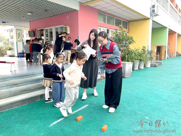 本次体测项目主要包括身高、体重、双脚连续跳、10米折返跑、走平衡木等8个项目,对3至6岁儿童进行体能测评,为每个小朋友的身体素质“把脉”。 “本次测试可以科学、综合地评定小朋友的体质状况,更科学地指导幼儿园开展体育活动。”市二幼副园长潘合兰介绍,该园将根据体测数据进行科学分析、总结每位幼儿的身体与动作发展水平,有针对性地开展日常锻炼和保育教育,并科学安排膳食营养,帮助孩子们健康茁壮成长。