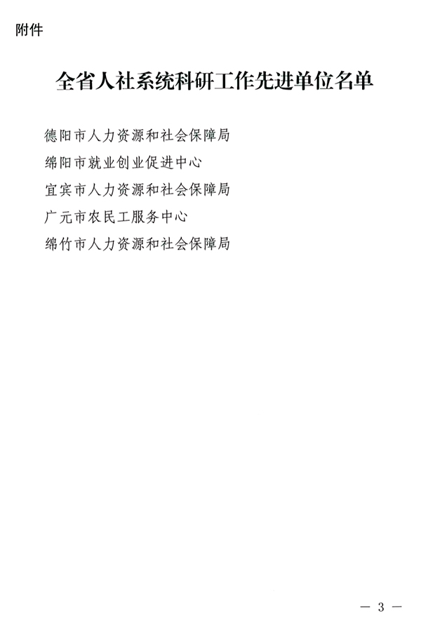 近日,省人力资源和社会保障厅下发了《关于表扬全省人社系统科研工作先进单位的通报》,对工作成效显著的5家单位予以通报表扬,绵竹市人力资源和社会保障局上榜。