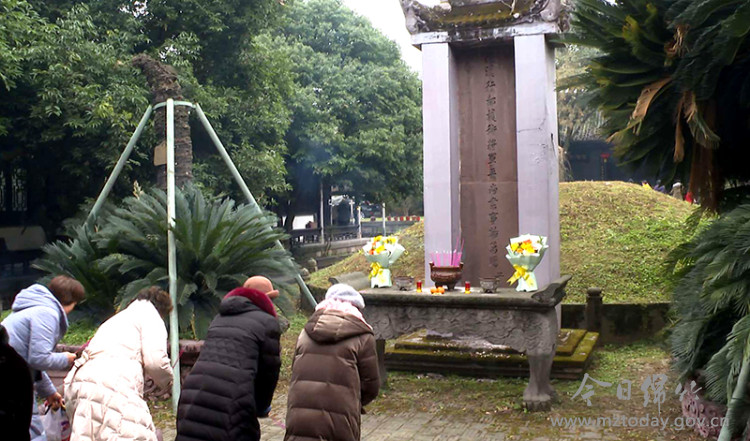 市文旅局相关负责人宣布活动开始后,市民或手握鲜花,或秉香静默。在现场击鼓、鸣金后,山门洞开,市民以心香素果,鲜花雅乐,来到拜殿对诸葛瞻、诸葛尚父子的牌位前上香叩首,随后来到诸葛双忠祠“后汉行都护卫将军平尚书事诸葛瞻子尚之墓”前和启圣殿的先师武乡侯诸葛亮及其夫人黄氏雕塑前行礼。