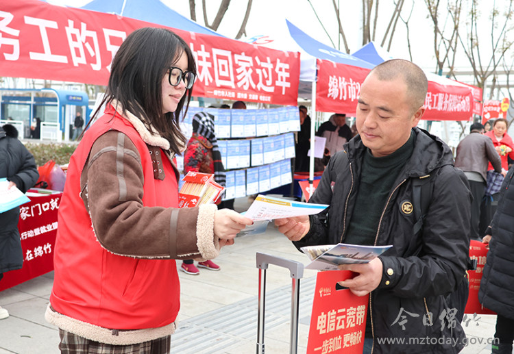 为扎实做好2024年今冬明春农民工服务保障工作,2月5日下午,市人社局联合团市委、市交通运输局、中国电信绵竹分公司在绵竹南站开展了“迎新春 送祝福”春节农民工返乡接站活动,为农民工送政策、送岗位、送祝福、送温暖,让他们切实感受到家乡的温暖。