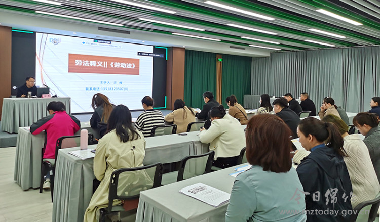 为更好地发挥法治对营商环境的引领、规范和保障作用,切实维护企业和职工的合法权益,提升园区企业依法合规经营管理水平,近日,市人社局劳动就业股股长、公职律师汪辉前往绵竹高新区,通过线上线下的方式为80余家企业开展了一场形象生动的法治讲座。