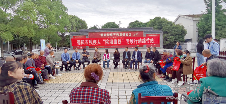 4月30日上午,我市在紫岩街道齐天集镇社区启动了2024年度德阳市残疾人“院坝维权”专项行动绵竹站活动,零距离为残疾人提供了法律、教育、就业、康复等方面的服务。