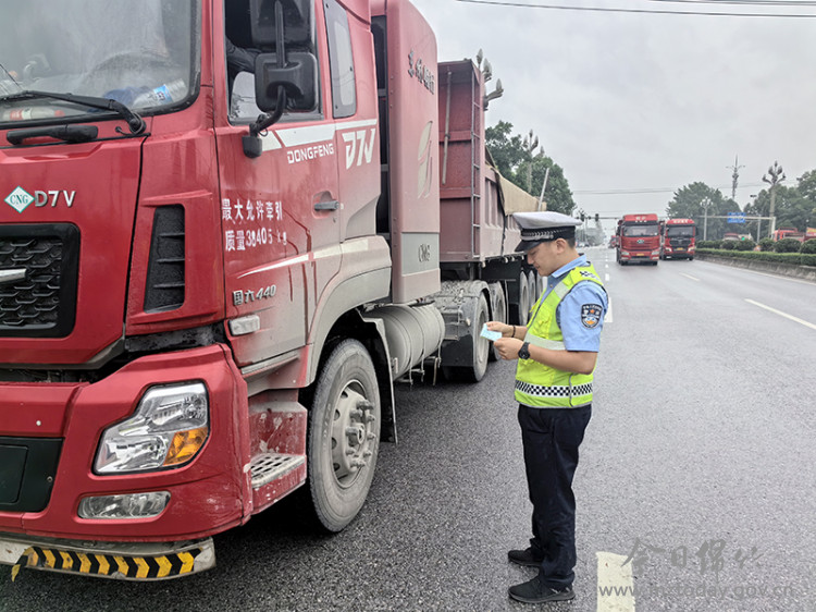 6月10日上午9点40分,交警在汉拱路设卡对来往货车进行检查。驾驶员梅某被交警拦下例行检查后,发现该车核载49吨,实载50.2吨。交警对其进行严厉了的批评教育,并根据相关规定,对驾驶员处以驾驶证记1分、罚款200元的处罚。