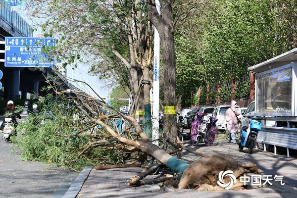 4月12日,石家庄遭遇强风,树木被刮倒。(翟羽佳/中新社河北分社/视觉中国来源视觉中国) 二、大风为何如此强劲? 为何此次过程的风这么强?中国天气网首席分析师信欣表示,气压梯度大及高空动量下传是造成强风的主要原因。此次过程中,高空冷高压较强,在内蒙古一带地面有温带气旋形成,导致气压梯度加大。冬春季节,当强冷空气撞上实力不俗的暖湿气流,一言不合就能逆时针扭打旋转起来,温带气旋就此诞生。“它就像一个不停旋转的天气陀螺,若恰逢其他天气相配合,就像无形的鞭子反复抽打,使陀螺越转越快,短时间内威力急剧增强,从而产生强风天气,风力最强时程度不亚于台风。”信欣解释。
