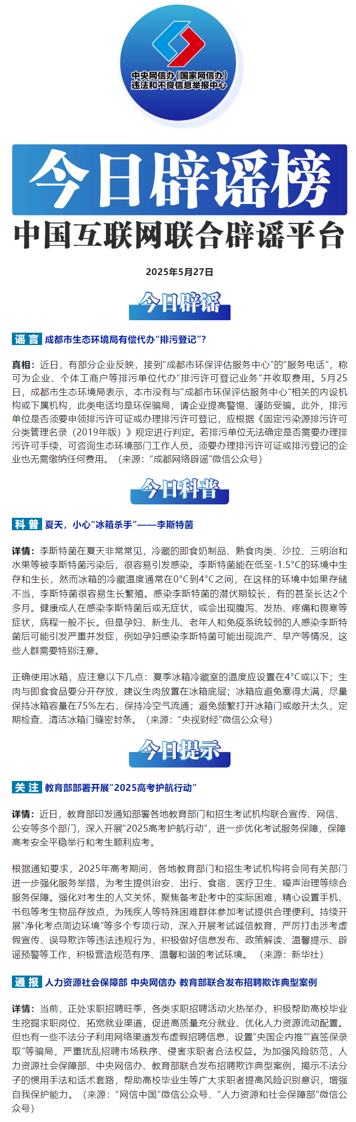 今日辟谣(2025年5月27日)