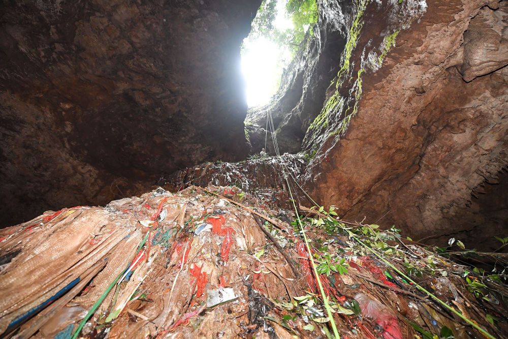 溶洞变身天然“垃圾桶”