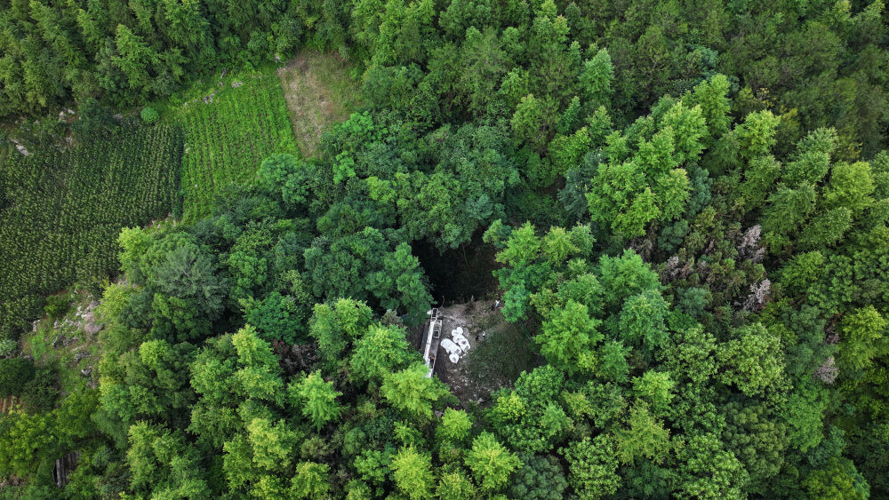 这是6月3日拍摄的慈利县东岳观镇彩球村大田坑溶洞(无人机照片)。新华社记者 陈振海 摄