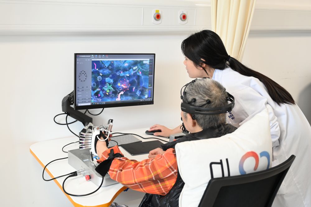 重庆市第五人民医院的脑机接口康复治疗室内,医护人员正在帮助患者调试脑机接口康复训练系统(2025年4月11日)。新华社记者 李晓婷 摄 “脑机接口从一个看似‘科幻’的概念变成了实实在在的临床诊疗‘生产力’。”重庆云脑医疗科技有限公司董事长张海峰说,这为患者康复提供了一种新的技术手段。 当老吴想着“握住左手”,非侵入式脑电帽就开始采集他的脑电信号,将指令发送给手功能康复机器人,带动其手部完成这一指令。“相当于人工搭建了一条体外神经通路,代替受损的中枢神经系统,实现由被动康复向主动康复转变。”医院康复医学科副主任医师谢梦说。 “近年来关于脑机接口的研究成果密集产出,但要真正实现产业化落地,说起来容易做起来难。”回想产业化初期,张海峰感慨万千,“要在近1000亿个神经元的大脑中清晰分辨有效信号并分析解码,最终实现智能化的诊疗方案。作为国内最早开展脑机接口产业化的企业,无前例可循。” “在日复一日的试验中,我们成功建立了数据分析模型,并不断迭代优化算法。”张海峰说,2018年企业脑机接口产品在全球范围内率先获得医疗器械注册证。如今系列产品在400余家医疗机构进行临床应用,服务超50万人次。 “总书记强调‘健康是幸福生活最重要的指标’。加强健康领域技术创新和产业化落地是保障人民健康的有力支撑。”张海峰说,以脑机接口为代表的医疗技术创新已迎来发展黄金期。 面向人民生命健康,国产质子治疗系统等医疗重器“从无到有”,癌症、白血病防治药物等实现突破,融合了大数据、人工智能的新型医疗模式快速发展……“脑机革命”的创新成果正越来越多转化为普惠大众的医疗“生产力”。 |