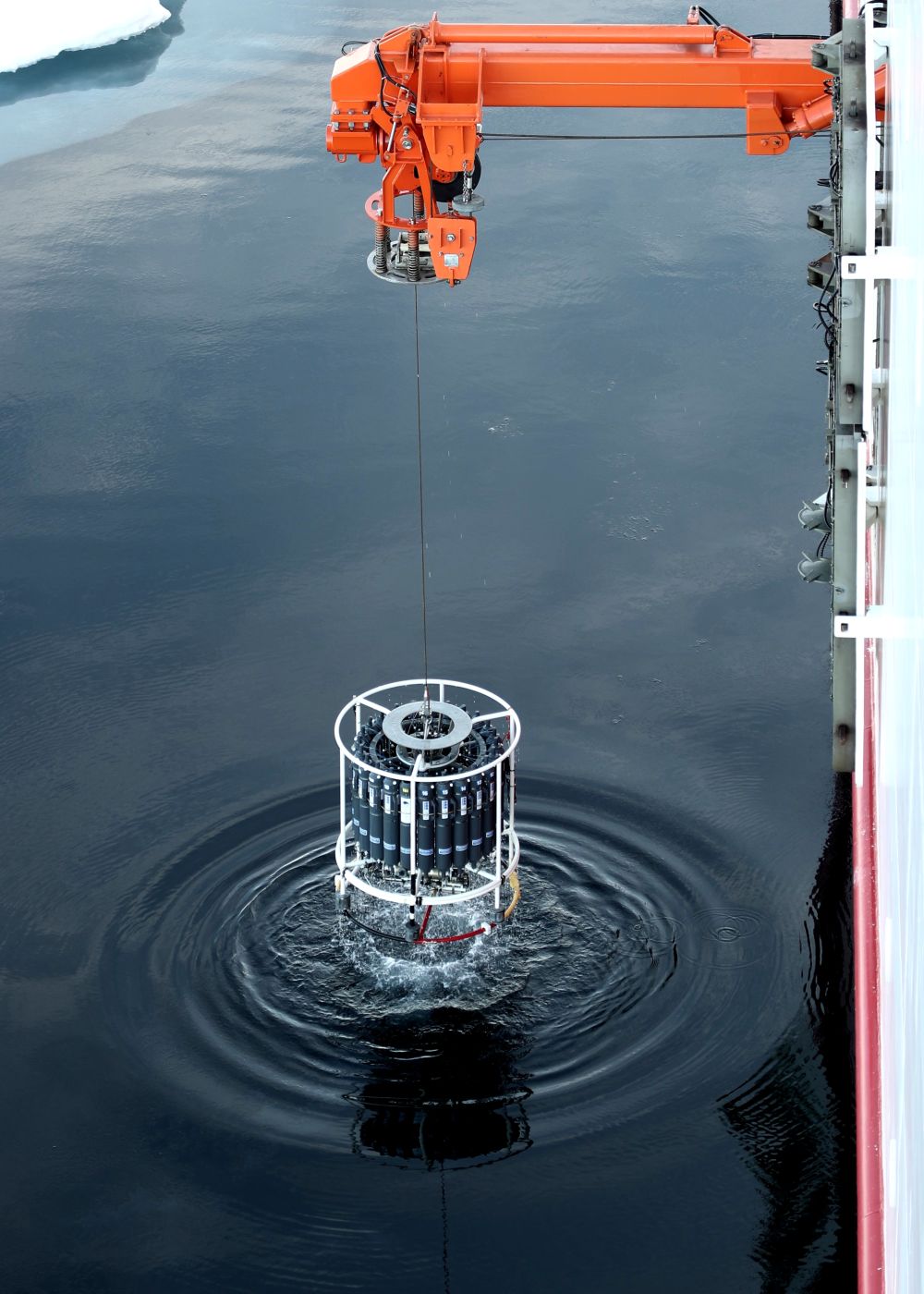 中国第15次北冰洋科学考察队日前在北冰洋楚科奇海陆坡区发现深层叶绿素极高值。专家认为,这对理解“海雪”的形成机制及评估北极生物碳泵和深层食物网有重要的科学价值。 CTD正在回收中。新华社记者刘诗平 摄 “我们在楚科奇海陆坡区进行的一次CTD(温盐深剖面仪)采样作业中,出现了令人惊讶的一幕:CTD在下降过程中,荧光探头上的叶绿素值一路飙升,最高达到200毫克每立方米,是我国历次北极科考作业中发现的最高值。”本次考察队生物组组长、自然资源部第二海洋研究所副研究员郝锵说。 郝锵介绍,经考察队研究同意,科考队员在“雪龙2”号实验室保障团队配合下随即开展加密采样作业,尝试对这一叶绿素峰值进行捕捉分析。 初步结果表明,该叶绿素峰值位于跃层的边缘,主要由大型的链状和针刺形硅藻构成,其中粒径大于20微米的浮游植物占比超过九成。