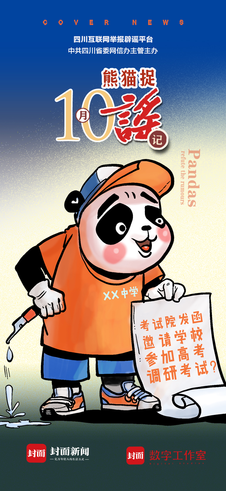 成都试点取消中考?彭州出现多起毒蛇伤人事件?宜宾高场镇人贩子抢娃?领导落马抛售房产?熊猫斩谣侠带你一览10月省内热传谣言,片面信息不准确,这些传闻莫再信!