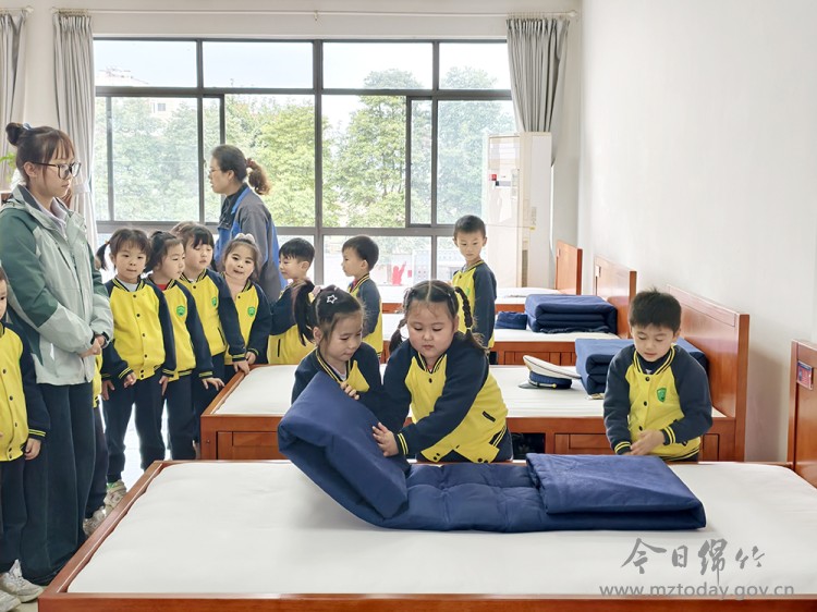 在消防车库内,威风凛凛的消防车让孩子们兴奋不已,部分孩子乘坐了消防车,近距离感受到“移动堡垒”的神奇。最后,大家走进消防员宿舍,消防员现场演示了叠被子技巧,手把手指导孩子们尝试,在实践中培养自律整洁的好习惯。