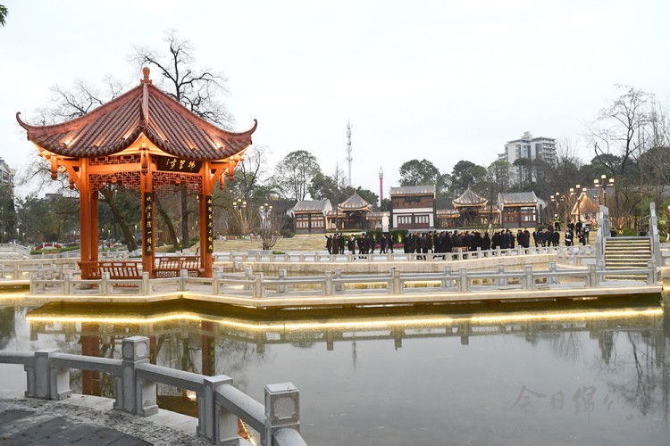 为回应市民的情感寄托,公园对多处标志性节点进行了升级打造: ——文化地标更鲜明:在读书台区域,新增了宋代大儒张栻的雕像,并配以文化墙展示其生平事迹,增强了该区域的文化研学功能。 ——记忆载体得保留:承载无数市民童年记忆的长颈鹿雕塑,通过3D扫描技术进行了高精度还原修缮,将继续屹立在公园原来的位置。荷花池栈道与八角亭也已完成翻新,古韵依旧。 ——红色记忆续新篇:杨锐广场在保留原有风貌的基础上进行了优化升级,让红色文化在“修旧”中焕发新生。 全面升级:打造综合性“城市会客厅”
