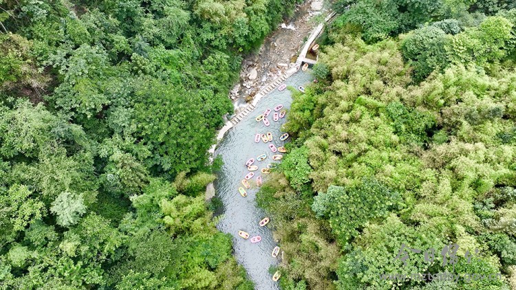 ▲图片由九龙镇提供 除了空中滑翔,地面的户外运动同样精彩。日前,“九龙山跑马岭户外徒步——寻龙纪”活动拉开帷幕,吸引了上千名市民和游客参与其中。活动以“推动体育旅游、促进全民健身”为宗旨,通过常态化开展徒步活动引导人们用脚步丈量山水,感受自然与人文交融的韵味。 在不同季节,去九龙镇可以体验不同的户外运动项目。每到夏季,位于清泉村的龙门山云溪谷漂流景区便成为消暑热门选择。全长6.5公里、落差达229米的峡谷河道,为游客带来充满凉意与激情的水上旅程。景区设有28处刺激点位,并配备完善的安全保障与戏水设施,单日最高接待量可超5000人次。