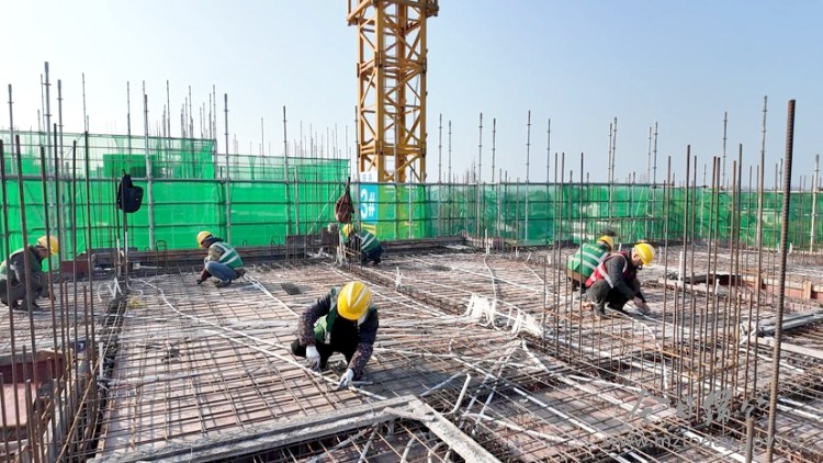 1月6日上午,记者在绵竹市孝德镇清道社区安置房建设现场看到,吊车挥舞“长臂”,施工人员忙着绑扎钢筋、支护模板、浇筑混凝土、防水施工,一派热火朝天的建设景象。