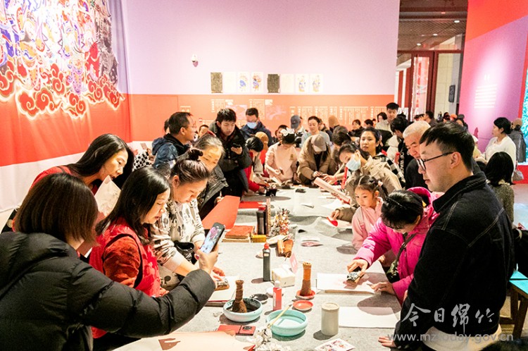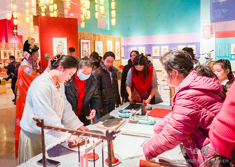 绵竹年画体验区现场人气高涨,成为观众沉浸式感受非遗魅力的热门区域。在工作人员的指导下,游客们亲手执刷、铺纸、拓印,于墨香纸韵间体验传统木版年画的技艺传承。年画艺人现场讲解绵竹年画的历史脉络与工艺特色,使流淌千年的非遗在互动中可感可触。