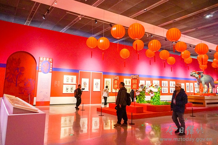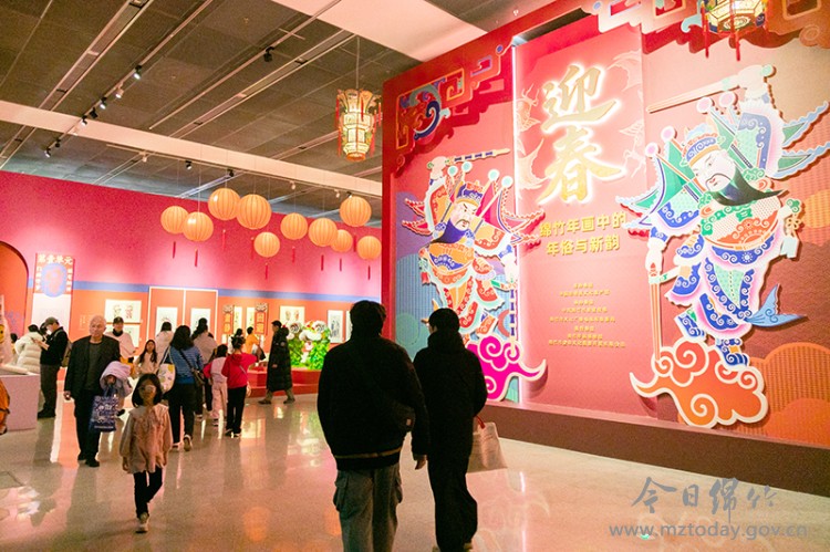 步入展区,一盏盏红、黄灯笼层叠垂挂,与琳琅满目的年画佳作相映生辉,现场洋溢着喜庆热烈的新春氛围。本次展览时间为2月4日至3月20日,紧扣“非遗贺新春·寻味中国年”主题,集中展出150余幅绵竹年画精品。
