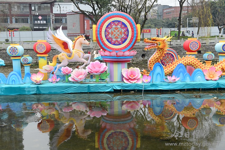 在氛围营造中,围绕马尾河两岸、10座主要桥梁、城市交通转盘、市区公园、绵竹南站及高速出入口等重点区域,实施了系统的亮化美化与街景布置,全力烘托喜庆祥和的春节气氛。 值得一提的是,为回应市民对传统河灯景观的期待,本届年画节还特别策划新增13组主题河灯。这些河灯以绵竹年画、本地风光与城市地标为创作灵感,既还原传统年节场景,又丰富视觉层次,在夜色中为城市增添融融暖意,寄托新春美好祝愿。
