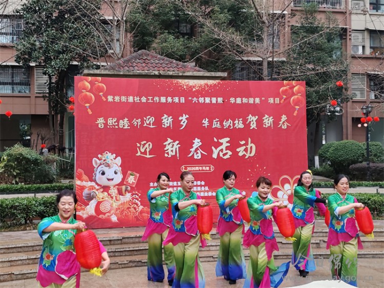 2月7日,由紫岩街道主办、玉马社区承办的“晋熙睦邻迎新岁 华庭纳福贺新春”活动在晋熙华庭小区举行。文艺爱好者轮番登台,表演了舞蹈《张灯结彩迎新春》、健身操《江湖狂野》、合唱《欢乐中国年》等节目,现场还开展了猜谜语、蒙眼敲鼓等趣味互动游戏。