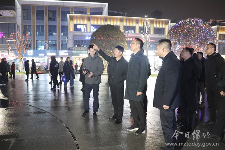 随后,陈阳波、潘鹏一行沿途察看了绵竹城市主干道、高速出入口等重要通道的氛围营造,并前往绵竹广场、绵竹人民公园及马尾河沿岸景观示范带等地进行调研。绵竹广场上,多组灯组流光溢彩,与周边建筑亮化相映成趣;绵竹人民公园内,树木装点着繁星般的灯饰,步道两侧点缀着温馨的景观灯光,营造出步移景异、温馨雅致的游园氛围。尤其引人注目的是马尾河沿岸,沿河灯光璀璨,水面波光粼粼,13组形态各异的主题河灯勾勒出蜿蜒动人的光影画卷,吸引了众多市民夜间游览。陈阳波强调,做好春节氛围营造工作,对于展现城市发展活力、提升群众的幸福感具有重要意义。相关单位要精细打磨城市窗口和公共空间的节日景观,做到重点突出、亮点纷呈;要切实加强人流密集场所的安全管理、服务保障和应急准备,确保各项活动安全有序;要注重氛围营造的长效性,将好的经验做法融入日常管理,持续提升城市品质,让广大市民和来绵游客度过一个欢乐祥和、安心舒心的新春佳节。 市委办公室主任侯科,市政府办公室主任刘宇,市委宣传部、市住建局、市综合执法局、市交通局、市文旅局、市融媒体中心、市金申公司等相关部门、单位主要负责人参加调研。
