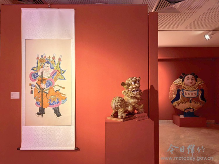 本次展览汇聚海内外非遗精品与民俗展演。由绵竹年画博物馆推荐的国家级非遗精品绵竹年画《立锤》精彩亮相,以传统门神年画为载体,向新加坡民众传递中华年俗文化与新春祝福。