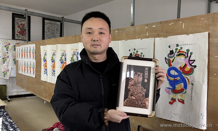 李德敬的学艺之路,满是艰辛,却也藏着最坚定的热爱。从4岁开始,他便跟着爷爷蹲马步练悬腕,锻炼手臂的稳定性;8岁拿起刻刀,反复打磨、练习刻版,指尖磨出厚茧也未曾停歇;12岁时,他已能独立刻出门神版画,初显技艺天赋。“爷爷常说,年画不是简单的画,是‘刻’出来的魂,每一刀都要有筋骨,每一笔都要有温度。”李德敬说。