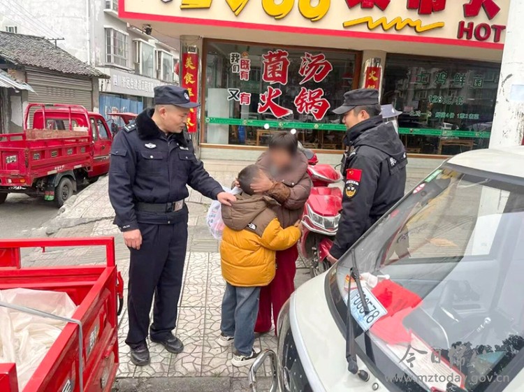 ▲图片由绵竹市公安局提供 2月19日上午11点,市公安局特巡警大队民警正在人民公园巡逻。人群中,一名神色慌张的群众跑上前来求助:自己三岁半的儿子在玩耍时走失。民警迅速记下孩子的体貌特征,并随即将队员分成两组展开搜寻,一组沿着母亲走过的路线反向寻找,另一组则深入游乐设施区域逐项排查。十分钟后,民警终于在一处游乐设施旁找到了正在哭泣的儿童。