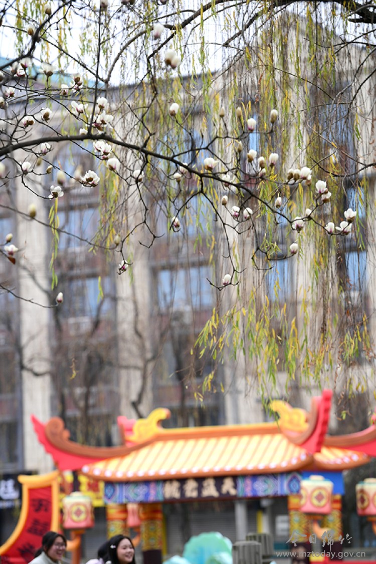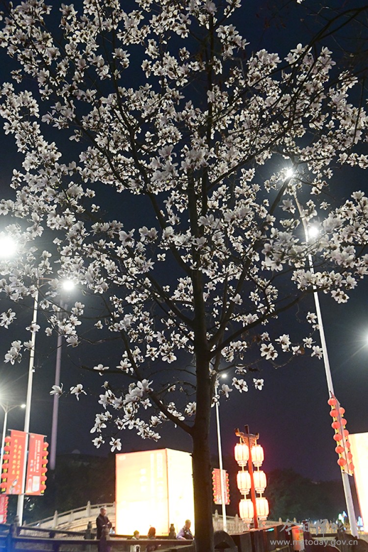 近期持续晴暖的天气提前催开了早春花卉。2月25日,记者在绵竹市区马尾河畔多个地段看到,玉兰花已悄然盛放,花期较往年略有提前,娇俏的花朵缀满枝头,与两岸建筑、河中彩灯等相映成趣,勾勒出母亲河独有的早春景致。