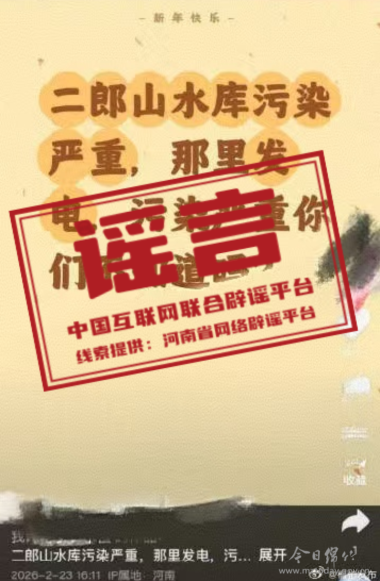 辟 谣 网传“河南桐柏二郎山水库因发电致污染严重”系谣言