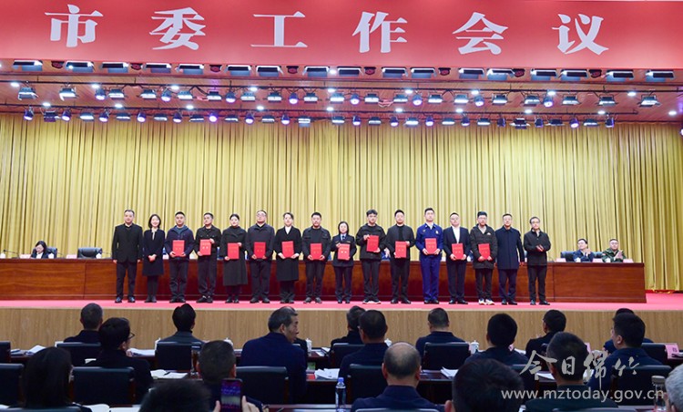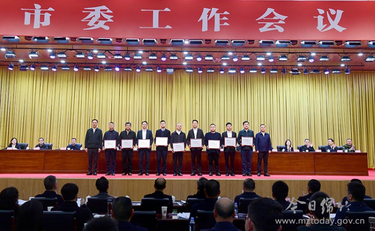 潘鹏强调,我们既要看别人怎么干,对标先进找差距;也要看我们怎么干,把任务落到具体事上;还要看我们以什么状态干,把精气神提起来。从今天开始,全市上下要进入战斗状态,抢时间、拼进度、抓落实,用一个月的实干,拼出一季度“开门红”,以决定性的起跑赢得这一年的主动。 会上,市委常委、常务副市长刁斌通报了2025年度14项重点目标、65项重点任务和65个重大项目完成情况,并对2026年度10项重点目标、70项重点任务和70个重大项目进行说明。 市委常委、组织部部长、社工部部长刘丁滔宣读了《中共绵竹市委、绵竹市人民政府关于表扬奖励创建D级化工园区工作中表现突出集体和个人的决定》。与会领导为在创建D级化工园区工作中表现突出的集体和个人代表颁奖。