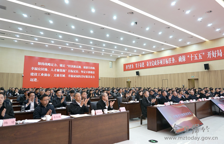 会议宣读了全市2026年度10项重点目标、70项重点任务和70个重大项目;相关部门进行交流发言;与会人员观看了专题片。