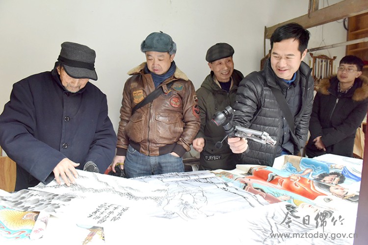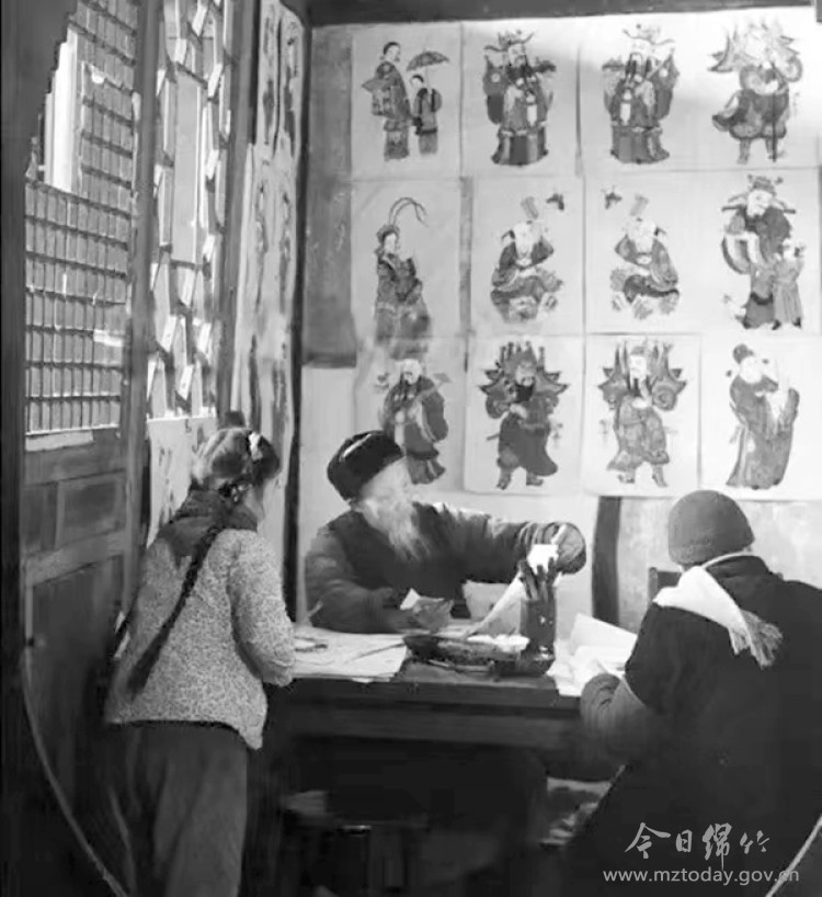 ▲王官玲祖爷王天宝(中)在二十世纪六十年代创作绵竹年画的场景(资料图片)